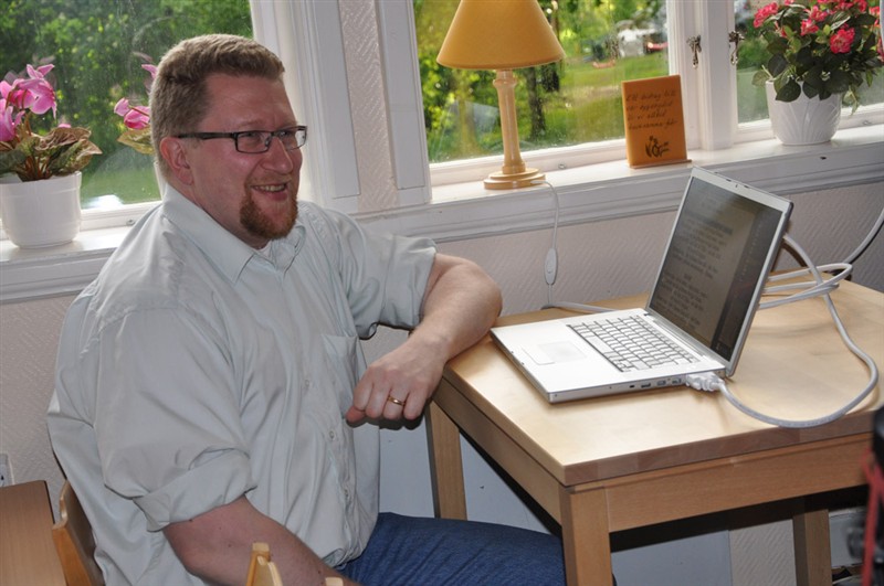 Robert Staflin har varit en hjälte vid övning och urpremiären. Han ordnade datorstöd och videoinspelning av hela konserten.